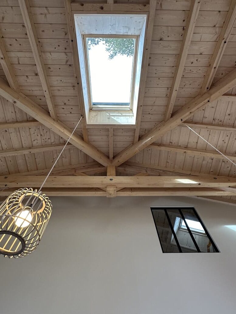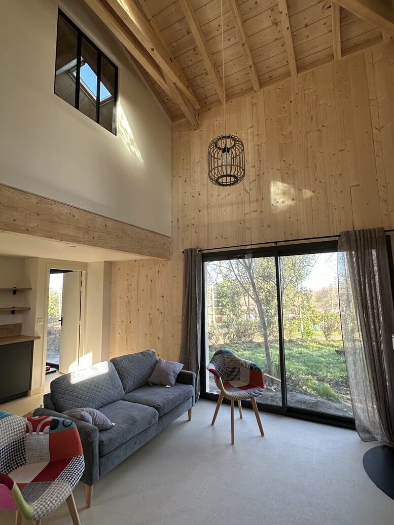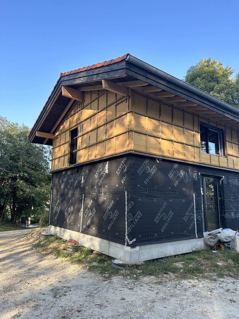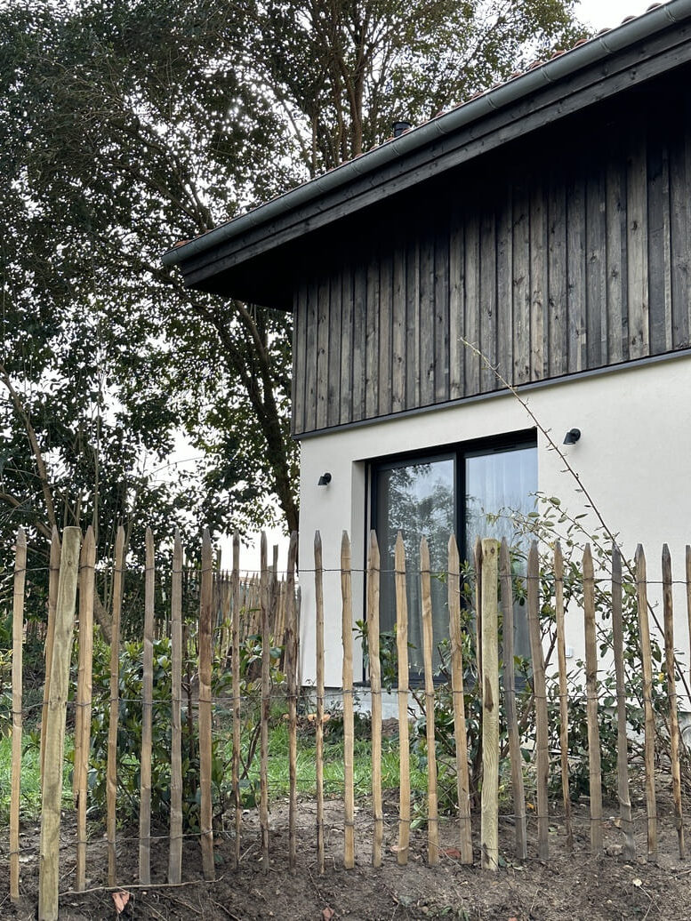 Construction d’une maison individuelle intégralement en ossature bois et en isolation biosourcée. Conception et réalisation en charpente traditionnelle et essences locales (pin maritime).